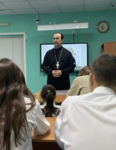 12 ноября в структурном подразделении школы «Развитие» прошёл час общения с отцом Виталием, настоятелем Спасского храма села Коларово. Это событие было посвящено знакомству школьников с жизнью и деятельностью выдающегося миссионера Макария Невского, чьё наследие глубоко укоренилось в культурной и духовной истории города.